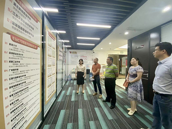 讯方技术广西办事处总经理甘继敏带领拜访领导一行参观了讯方技术广西办事处,详细介绍了智慧校园建设、认证培训、专业共建院校运营等内容。
